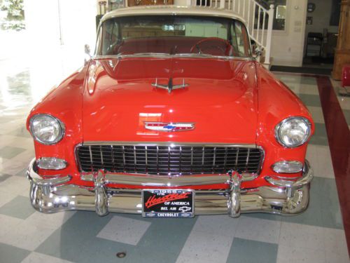 This 1955 Chevrolet Bel Air 2 dr. hardtop has had a FULL professional frame-off rotisserie restoration of an original California car. Every nut and bolt, body part and drivetrain item has been restored. This is without a doubt one of the finest '55 Chevys in the country. Let's start with the 265 cu. in V/8 power pack engine, two speed powerglide transmission, factory power steering and power brakes, heat and air conditioning. This beautiful body sports all new glass, felts and weatherstripping. The interior is brand new factory stock and absolutely gorgeous. The exterior has all the extras starting with the front and rear bumper guards, grill guard, gas door guard, rocker panel mouldings, stone guards and factory style exhaust extensions. All these items are either brand new or completely re-chromed. The engine compartment speaks for itself from the Delco battery to the hose clamps and looks better then new. The undercarriage is also definitely better then when it came from the factory and is reflected in the pictures.. Once you check all the pictures you will see the beauty of this great car and be assured that it looks better in person. This great Classic car is available for a fraction of the original purchase price and restoration costs. This is a hard asset and a great investment. We would welcome any potential buyer to inspect this great car and see for themselves how well this wonderful restoration has come together. If you have any questions about this gorgeous automobile please call me at 585-314-8000. Thanks, Brian Page |