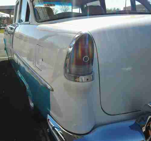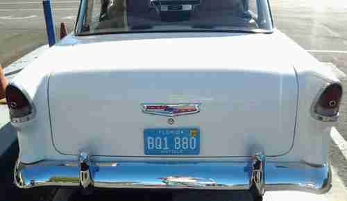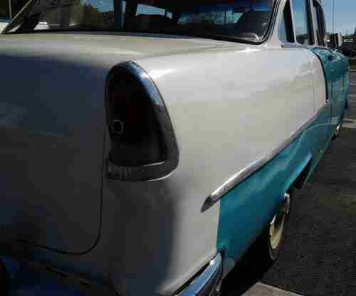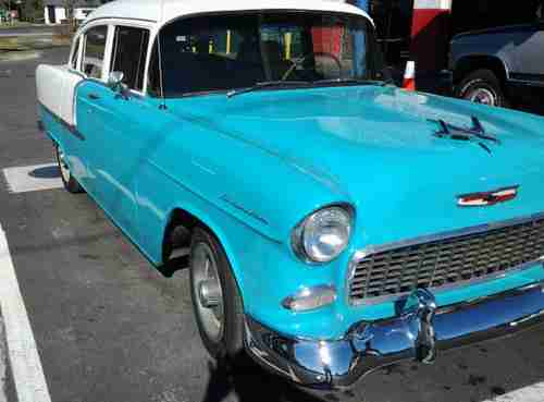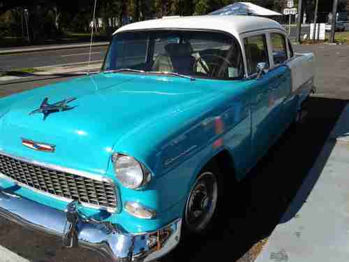 Here for your consideration, is a SWEET 1955 Chevrolet sedan, with NEW tires, NEW straight pipe exhaust, NEW battery, UPDATED full LEATHER seating, and CLEAR FLORIDA TITLE. This Chevy was built to run, with a 350 small block engine CHROME valve covers, RUMBLING straight pipe exhaust, CHROME Edelbrock breather cover and 3 speed automatic transmission(with shift kit). The body, floor pans, trunk pan and frame of this GORGEOUS 55 are all in SOLID condition with only minor surface rust in a few spots. The Chevys interior has been TASTEFULLY UPDATED with FULL LEATHER seating with 8 WAY POWER SEATS up front, radio & speakers, SMOOTH door panels, headliner, and car cover. ALL of her CHROME, trim, emblems, and badges are in restoreable to EXCELLENT condition.All of her glass is in GOOD condition, with the exception of some slight cracking on the drivers side window. The rear door handles have been shaved, for a sleeker look, and are totally functional from the inside. The Chevy shows NO signs of accidents, and is as STRAIGHT AS AN ARROW, only showing the usual blemishes associated with over 58 years of driving. This Chevy is the perfect combination between original & modern, with the traditional paint color exterior, modernized interior, 350 engine and automatic transmission. The car fires right up, runs, and drives, but has developed a knock, and will need the engine serviced, or swapped out, which is SUPER easy to do with this 4 bolt transmission set up. I am willing to discuss the sale price of this Chevy, and I do have her listed locally and reserve the right to end this auction at my discretion. If you would like to discuss and or make an offer to secure this NICE 55 Chevrolet, before someone else snatches her up, send all inquiries to caddycorral@gmail.com. This vehicle is being sold AS IS, WHERE IS, with NO WARRANTY WRITTEN,OR EXPRESSED. FULL payment for this vehicle MUST be made within 3 days from the end date of the auction. Buyer is responsible for pick up and or transport of this vehicle within 7 days of from the end of auction date. GOOD LUCK & HAPPY BIDDING.