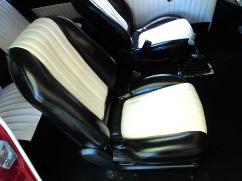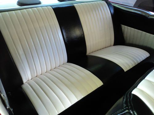 This 57 has a very clean custom interior. The car pretty much has all new interior except for some of the dash components. The bucket seats are free from any rips and tears and are in great condition along with the rear seat. Carpet is like new. Headliner is new and white. The door panels are in great condition as well. The dash is nice also. The car has a Sony FM cassette player, with 6 X 9 rear speakers. All lights, except turn signals work. All guages work as they should.