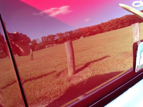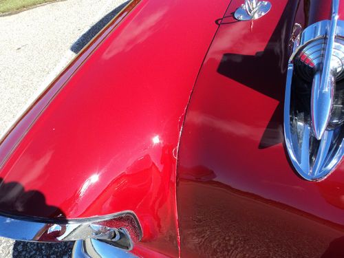 This Chevy has a very slick paint job, on a soild, straight body. The car was professionally painted years ago with PPG base coat clear coat, it has been garage kept and still shows mirror like reflections as can be seen in the pictures. The car does have a few paint imperfections, mostly go unnoticed unless under flouresent garage light. There are a few blemishes on trunk next to license plate, bottom of drivers door has a spot about the size of a eraser tip, and the hood has some chips touched up on the edge against passenger fender, again hardly noticeable, but worth mentioning. See last pics. I would rate the paint a 8 or 8.5 on a 1-10 scale. All gaps and fitment of panels are nice, doors open and close easily. All door, hood, and trunk jams finished out nice. The undercarriage is solid.The floors, frame, body braces, trunk pan, rockers, and spare tire well all look solid. All glass and trim around glass is nice. Chrome and stainless trim is in good shape. Front bumper chrome is a little faded where the water runs off the bullets. The car also has all newer door weatherstrip. It also has a perfect new set of polished American Racing Torq Thrust wheels, with Firestone SS20 tires. The front is 15 X 4 with a 165 80, and the rears are 15 X 8 275 60's.
