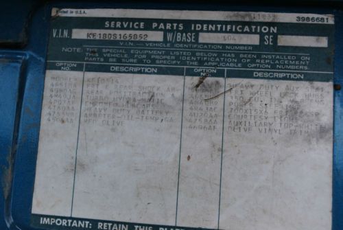 Clean clear title. Seller reserves the right to end auction at any time..Not running but does not need much. All there and everything hooked up. As you can see the rockers are not rusted. This is a very straight blazer.Everything is there and body is straight. This was an original olive green. 350/350 auto. Never been molested besides being painted one time and a rebuilt 350 engine installed. I purchased this blazer from original owners so I have all the paperwork and receipts. The original 350 auto trans was rebuilt in the late 90's as well as the engine was swapped with a rebuilt era correct 350. This blazer came with power steering, power brakes automatic trans and heavy duty rear bench from the factory.It also came with a dealer installed A/C which is all there and very rare for this year. The compressor and the dryer are off the vehicle but are all there intact with all the original brackets.Clean clear title. The top is in excellent condition with the exception of the rear hatch it will need some will require new tires. This blazer has 3 minor dents through out the entire vehicle, and no need to replace rockers. A new fuel tank, sending unit and brackets were ordered and will be included in this sale. The rear bench seat is in very good condition, maybe a good cleaning. The driver side will need reupholster but is in fair condition. As is no returns, no money back. Buyer responsible for all shipping arrangements and costs. Any questions call me or text me at 520 780 3871