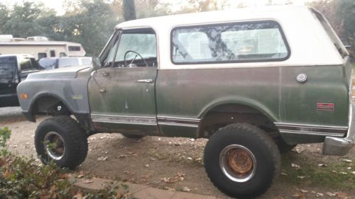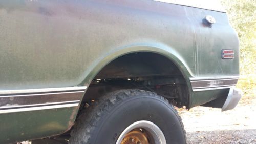 1971 gmc Jimmy. Has power steering, power disk brakes, also Has rebuilt 350/350 trans. Truck runs very strong and is no slug. Engine has 10.5:1 CR, Cam, headers edelbrock intake and Carb. Trans does have shift kit. Dana 44 front and 12 bolt rear. 4.10:1 gears, Lockers both front and rear. WARN hubs, 33" tires on factory 6 lug rallies. It was an A/C truck and 90% of the equipment is still there. Missing compressor and other small items. Has some aftermarket gauges, brand new distributor, coil,wires and plugs. All of the fuel system was cleaned and all rubber hoses replaced. Suspension has had bushings replaced with polyurthane bushings including body mounts. Nice dual exhaust with flowmaster mufflers. Runs and drives good as far as older trucks go.