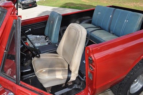 This truck was just painted this spring. Exterior is all red. Interior is black spray-in bedliner throughout. Removed all rust, replaced rocker panels etc., replaced most trim/chrome pieces. It is lifted with 35" All Terrains. There is a satellite radio installed and the speaker boxes are custom spray lined for weather-proofing. It has Dual Exhaust and an air horn. Runs great. Seats need to be re-upholstered.