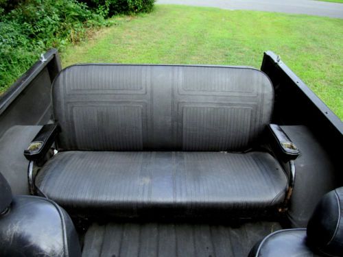 1972 JIMMY CONVERTIBLE 4 X 4 Same as Blazer but tougher With hard top Original 350ci & Turbo 350 transmission Power steering & power brakes List of custom changes and improvements Done within the last 3 years New right & left fender New starter New battery New chrome bumpers New fuel pump New electronic ignition distributor (to retrofit old point distributor) New 4 inch lift springs ( 4 leaf front) New 4 inch lift blocks (7 leaf rear) New Poly fuel tank and gas sending unit New four extended shocks New ignition switch, with new keys for glove box & matching door locks New alternator after conversion from fender mount regulator system (new alternator has built in regulator) New heater blower motor and dash control system New fan clutch New water pump & temp sender New Warn Locking Hubs New inner & outer front bearings New brakes New 6 lug alloy wheels for lift (4) 35 X 12.5 Tires New Cherry Bomb exhaust mufflers New CD -- MP3 -- USB Stereo with fiber optic remote control 1 - 10 inch base speaker (under seat) 2 - dash mounted tweeters 2 - door mounted mid range New dash pad Refurbished dash gauges Power Leather front seats ReCored hi volume radiator (never over heats) Rebuilt carburetor Armor coat interior of tub for water proofing Transmission flushed & filled New heavy duty drive shaft universals Both front & rear axels opened, checked and refilled. |
