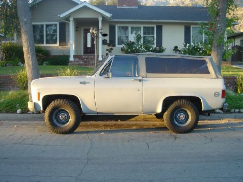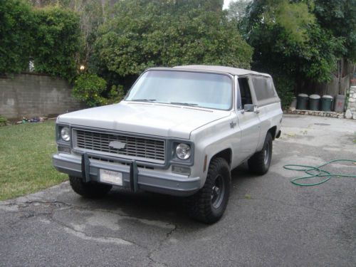 Custom restored 1973 K/5 Blazer Cheyenne dependable daily driver with Safari Style Soft Top with removable Windows. Very low mileage 250 HP GM 5.7/350 crate motor (have receipt) with Doug Thorley "shorty" headers, annually serviced 350 automatic transmission with factory transfer case, full time 4x4 with Warn Locking front wheel hubs, rebuilt rear differential & rear driveshaft with low mileage. Light Gray Exterior with Powder Coated Dark Gray Trim, Bumpers & 15x8 GM Truck Rally wheels mounted on 33x12.5/50R15 tires at stock height. Floorboards & interior panels spray lined with Linex, two tone Gray Hounds tooth & Gray upholstery material on front & rear folding seat(s), factory roll cage, Chapman Ignition Kill Switch System, Tuffy Security Products Secure Console, AM/FM cassette with 6 Disc Changer, MP3 ready. Owned & maintained since 1998, current California registration, CA Smog Exempt |