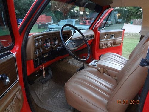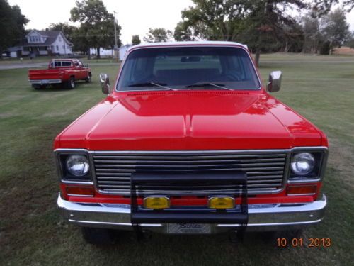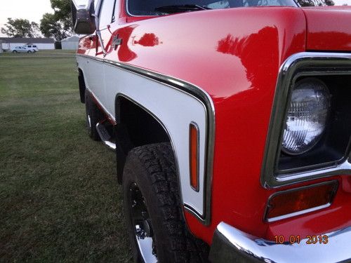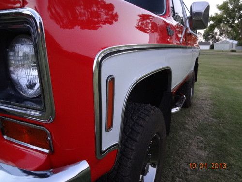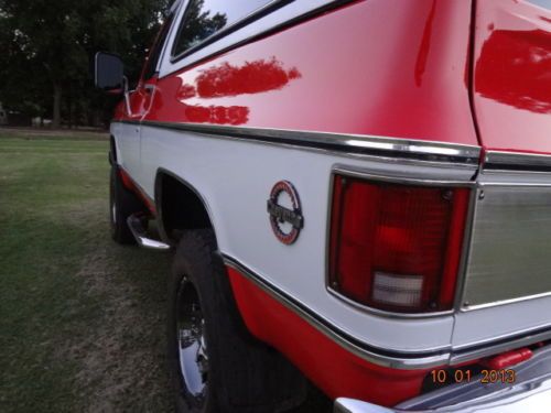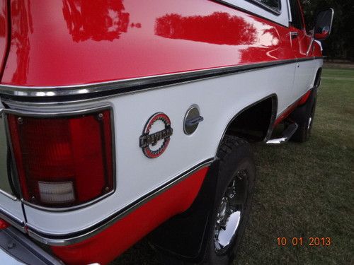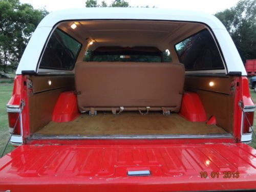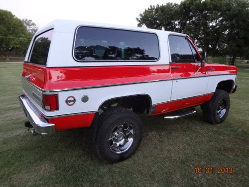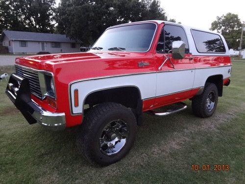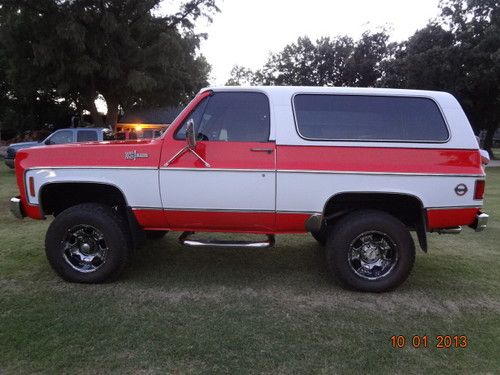 1974 Chevy Blazer 4X4 Cheyenne with 52,274 original miles. This Blazer was purchased from a local Chevy dealership in 1974 and has lived ever since in Abilene, Kansas. The Blazer has NEVER been wrecked and has all the original metal in perfect condition. Fresh paint in the original Crimson Red / White combo make the exterior pop, the recovered seats in the original saddle color freshen up the interior perfectly, and the wheels/tires and updated grill give the Blazer a toughened up look that make it a head turner on every drive. The Blazer sports a Cheyenne trim level including AC that blows nice and cold, power steering, power breaks, tilt and bucket seats. The original manual remains in the glove box!