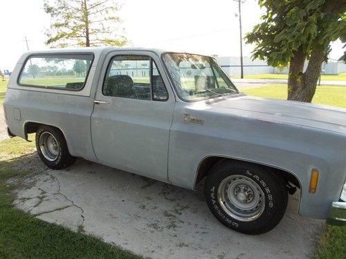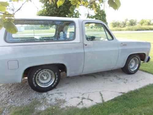I won't use the word rare, but these 2WD Blazers are not easy to find. Especially one as solid as this one. It needs restoration but is a great candidate. The body is solid with the only real spot of rust I can find on the firewall. The cab mounts, rockers, floor pans, doors, even the tailgate seem real solid. The truck was blue with blue interior, it's now primer. The interior is worn but appears original with factory buckets and a console. It does have manual windows and locks. It's lowered with spindles, a flip kit with a welded c-notch. The small block runs good and the trans shifts just fine. The A/C blows cold. Mechanically it's pretty darn good and I would probably drive it anywhere. I will include a bunch of pictures but I'm not a good photographer, so if you have any questions or want to see more let me know. Shipping is the responsibility of the buyer, but I will always assist. A deposit is required via Paypal and the balance in 7 days. Communication is key, don't hesitate. If you have low feedback, shout before bidding. Thanks