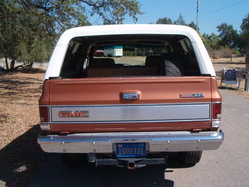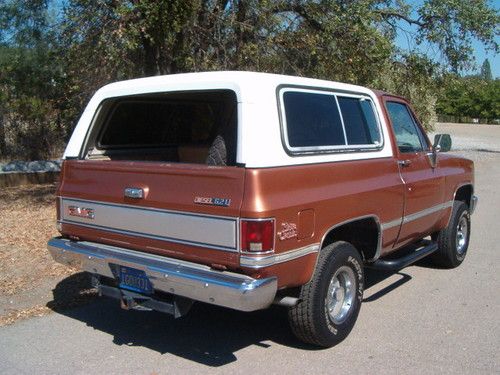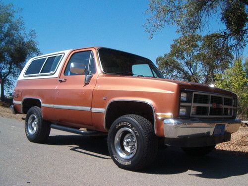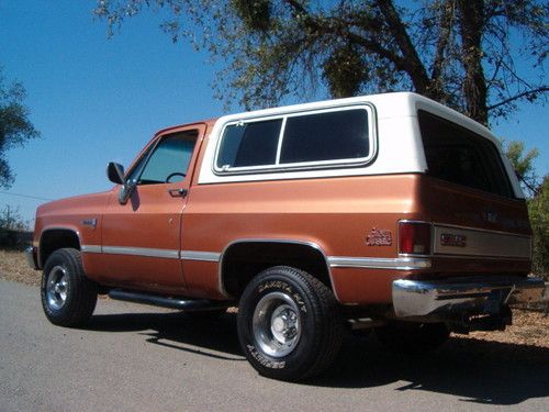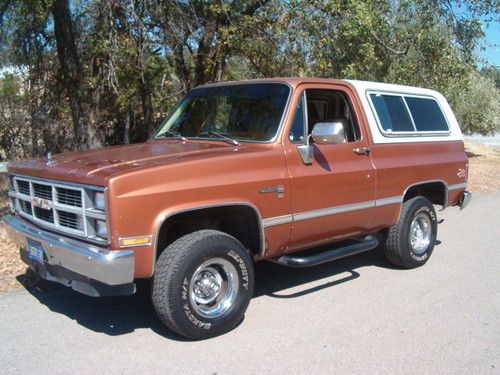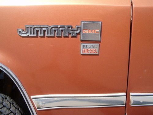 Up for auction is a 1983 GMC Jimmy 4x4.This 2 owner K5 has been in CA since new so the body and frame are 99% rust free. She is well optioned with 6.2L Diesel v8 4speed auto trans tilt p/s pdb cruise A/C power windows/locks.The body is very straight it does have a dent in the right front fender and the clear coat is peeling on the hood and roof.The interior is in good shape for the year. This Jimmy has been very well maintained she doesn't leak,or use oil she drives good every thing works except for the a/c (needs charged). I can help you with shipping if you need it.Please email or call 740-404-6411 with any ?