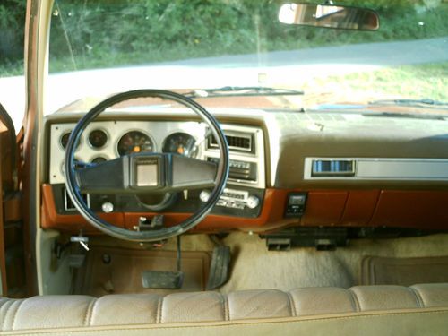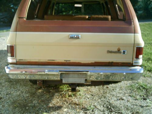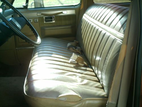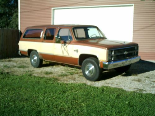 1983 CHEVY SUBURBAN SILVERADO 20 2 WHEEL DRIVE 454 POWER DOOR LOCKS POWER WINDOWS AUTOMATIC TRANSMISSION TILT STEERING WHEEL. IT HAS AC IT DOES NOT WORK ALL THE COMPONENTS ARE THERE BUT IT DOES NOT HAVE ANY FREEON IN IT.THIS TRUCK IS IN GOOD SHAPE FOR A 30 YEAR OLD TRUCK. THIS WAS A FARM TRUCK THAT WAS KEPT IN A GARAGE AN USED TO HAUL FLOWERS AND LANDSCAPING ITEMS FOR THE FARM IT WAS NOT USED FOR A LANDSCAPING BUSINESS IT WAS JUST USED ON A LOCAL FARM, THE MILEAGE IS ACUAL AT 61607 THE TITLE SAYS MILEAGE EXEMPT THAT IS HOW THEY DO IT AT BMV IN INDIANA. IT RUNS GREAT AND DRIVES GOOD. IT HAS NEW FRONT ROTORS AND BRAKE PADS NEW DRIVERS SIDE BRAKE CALIPER AND BRAKE HOSE. NEW DISTRIBUTOR CAP AND ROTOR. NEW AC PLUGS AND NEW PLUG WIRES. THE FLOOR PANS ARE IN EXCELENT SHAPE THE CARPET IS IN GOOD SHAPE FRONT CARPET COULD USE A SHAMPOOING AND IT WOULD LOOK GREAT THE BACK CARPET IS CLEAN AND IN EXCELLENT SHAPE IT WAS ALWASY COVERED WITH 2 LAYERS OF CARPET SO IT WOULD NOT GET DIRTY AND WORN. IT IS SET UP TO HAVE A THIRD ROW SEAT. IT HAS A PIECE ON TOP OF THE DASH THAT IS MISSING YOU CAN SEE IN PICTURE. IT IS MISSING SOME TRIM. YOU CAN SEE IN THE PICTURES WERE THE RUST IS BUT I WILL TELL YOU TH LOCATIONS SO YOU KNOW WERE IT IS IT CAN BE HARD TO TELL IN PICTURES. ON THE DRIVERS SIDE THERE IS RUST ON THE BOTTOM OF REAR DOOR ,ALONG THE BOTTOM IN BETWEEN THE WHEEL WELL AND TIRE AND BOTTOM OF THE REAR QUARTER BEHIND TIRE ALSO SOME ABOVE THE WHEEL WELL. THE ONLY RUST ON THE PASSENGER SIDE IS ON THE BOTTOM OF THE REAR QUARTER BEHIND TIRE. THE TAIL GATE HAS SOME RUST ABOVE THE SUBURBAN LETTERS AND ABOVE WERE THE LOWER MOLDING GOES. THE ONLY THINGS THAT DOES NOT WORK THAT IKNOW OF IS THE WIPERS AND MOST OF THE TIME YOU HAVE TO JAR THE POWER REAR WINDOW ON TAILGATE THE MOTOR NEEDS REBUILT OR REPLACED. THE TAILGATE HANDLE NEEDS AJUSTED BECAUSE IT OPENS HARD SOMETIMES. YOU CAN TELL THIS TRUCK WAS KEPT IN A GARAGE AND HAS BEEN WELL TAKEN CARE OF OR IT WOULD BE ALL RUSTED OUT AND IN BAD SHAPE BECAUSE THESE YEAR OF CHEVY TRUCKS WITH ALL THE ROAD SALT USED IN INDIANA RUSTED OUT QUICKLY. I HAVE TRYED TO LIST THE TRUCK THE BEST I CAN. I AM LISTING THIS TRUCK FOR MY BROTHER HE GOT A NEWER DODGE TRUCK AND NO LONGER USE TRUCK SO HE WANTS TO SELL IT TO SOMEONE WHO COULD USE IT. THE RESERVE PRICE IS REAL LOW. IF YOU HAVE ANY QUESTIONS EMAIL ME AND I WILL GIVE YOU HIS NUMBER SO YOU CAN ASK HIM ANY QUESTIONS. THE TRUCK IS LOCATED IN RUSHVILLE INDIANA 46173 SO IT WILL HAVE TO BE PICKED UP THERE. IT IS NOT AT MY ADDRESS TRUCK IS SOLD AS IS