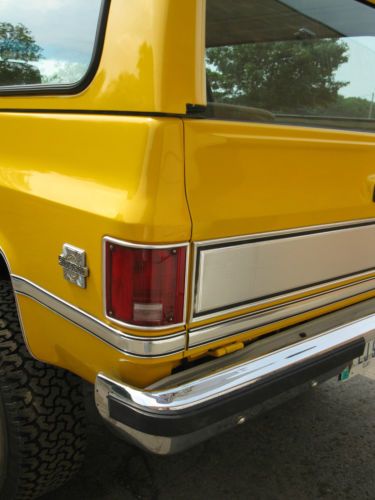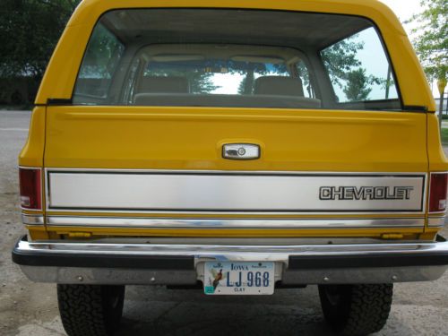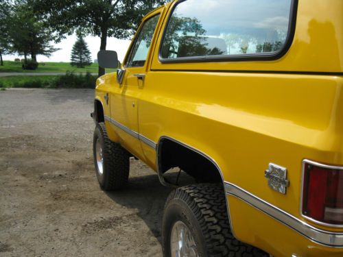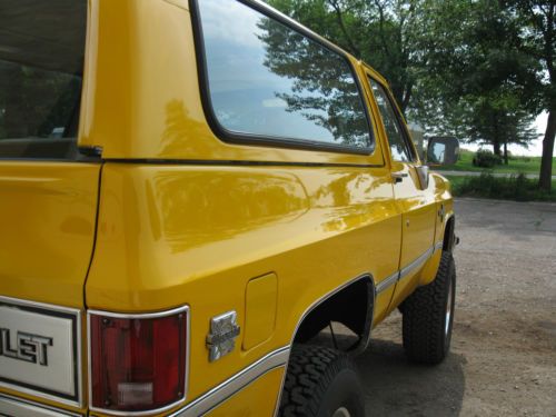 Hello, up for bid is my 1984 Chevrolet K5 Blazer. It has a 5.7L 350 V8 engine with 78,000 original miles. I am the second owner, and I purchased this vehicle in Iowa. It has always been garaged, when not in use. It is a smoke free vehicle. This vehicle is all original inside and out, plus a 6" lift, with new yellow paint, wheels and tires. Power windows, and door locks work great, and the A/C is ice cold. She's a beauty, and a great truck to drive. Any questions, please call me at 712-363-4890. Please, I do not accept texting. Thank you, Ray |