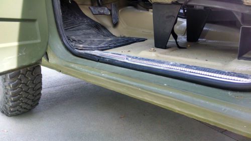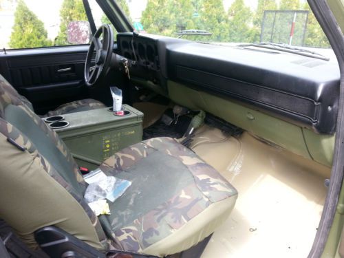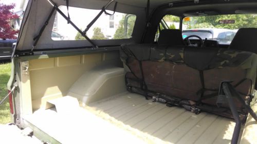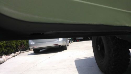 -Doghead relay mod -block heater -electronic fuel pump -rebuilt the front suspension with all moog parts (upper and lower ball joints, tie rod ends) and alignment -repacked front wheel bearings -New shocks all the way around -New dual exhaust -B&M shift kit and transmission cooler -new radiator, hoses and belts -new black door panels and black seatbelts -Curt class III trailer hitch and civilian wiring -BF Goodrich Mud Terrains w/ 95% tread -New ignition switch and door locks -Replaced all door rubber Winter of 2012 I replaced one rocker and repainted it using Sherwin Williams C.A.R.C paint in 383 green. I also sprayed Al's liner spray in bedliner and installed a softtopper. The hard top was discarded and not included in the sale. I originally bought this truck as a hunting/toy truck that quickly became a tow vehicle for our 18' bow rider boat. Other than a few short trips to the local lakes, it's really just been driven around town. $500 deposit within 48 hours of the auction and remainder within 7 days. I can assist with loading for shipment if needed. On May-26-14 at 12:44:54 PDT, seller added the following information: I have updated with additional photos. I included pictures of the cargo area. At some point the military used some sort of yellow epoxy which I could not grind or sand off. I went ahead and lined right over the top. It seems to be plenty strong and is no danger of peeling off. You can see where it spilled in the cargo area then where they dribbled it on the tailgate on the inside. I think it adds to the charm of the truck :) |