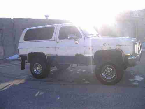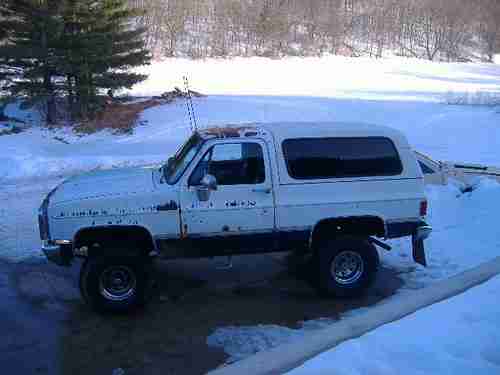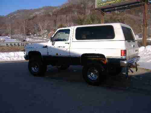 up for sale is a 1985 chevy full size blazer 4x4 this blazer runs and drives perfect has a rare option power rear window that works great 4wd works great has new drive shafts front and rear maybe alittle under half tread 35/12.50/15s it also has a 3inch lift 350 motor with 700r4 trans also has new headers with dual glass packs with nineties out behind the rear tires sound really nice exhaust is about 3months old the only problem is it slips in second gear but runs and drives very nice down the road does have a few dent and scratches and also surface rust but not alot of rust holes the rockers on this are solid also the floors are solid i took this blazer in on trade not nowing about the the second gear slip i found a couple of trans for it they range from $250.00 to $450.00 in price but i am selling as is you can still drive home.also this blazer is for sale locally and i will pull this of ebay if sold locally buyer is responceable for shipping ,and pick up thanks any other ?s please ask