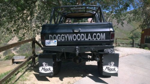 rebuilt 502 big block with a Turbo 400 transmission the sticker DOGGYWOODLA.COM on the tailgate will be removed (its a sticker) the Goodies: RV cam Edelbrock off road carb High ride intake Electric fuel pump Dana 60 front 14 bolt rear Detroit locker in the back power lock in front motor has about 15k miles 5-13 gears 4 wheel drive Roll CAGE 44 inch pitbull rockers tires canvas top (not shown) original campers Flow master exhaust winch Trailer hitch Recovery points custom bumpers This custom is Listed in our local car ads and other websites so auction might end early any questions, more pictures call Robert 818-481-3647 TO THE WINNING BIDDER contact us directly for $$ and pick up arrangements |