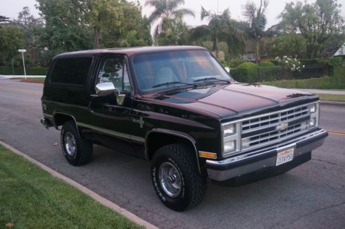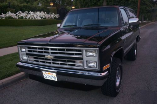 Up for sale is a 1987 Chevy K5 Blazer in perfect condition.This blazer is in all original shape with the original shiny paint and intact original interior with top of the line Silverado trim witch drives down the road like a brand new truck and has no oil leak or smoke at all . This trcuk has zero rust and it's only been driven in good weather, always been kept in garage,never seen snow, mud and never been in any accident or off road .its probably the nicest Blazer that i have ever seen.This truck has 127k miles on the frame and 21k miles on the new GM engine.It has 4 brand new tires and completely serviced .It passes the California emission test and all the gauges warning lights and everything is in working condition.