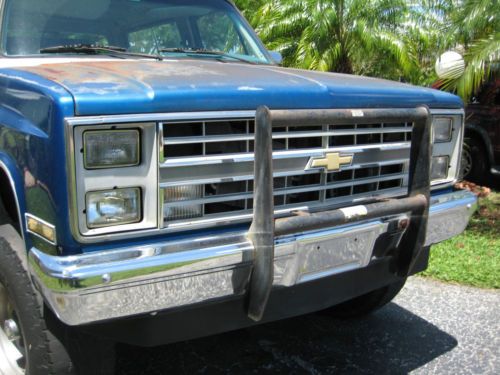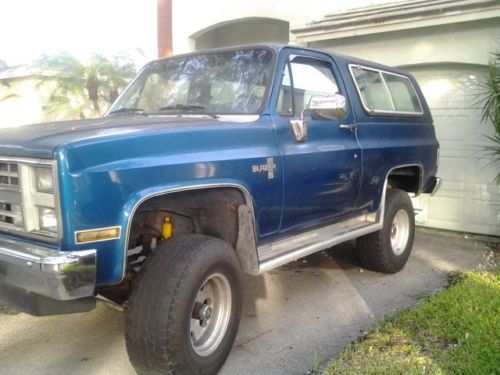 this is my 87 K5, she's in great condition inside and out, Ac works great, 4x4 works, new floor in the back, all windows work, seats are all in good condition, dash has new cover on it, only a few small rust spots we didnt fix, one small spot by the driver side door and then on the tailgate, both can be fixed before you pick her up. This would be ideal for someone like me who collects rare cars as its a convertible truck when you want it to be nd hard top when you dont. I have been looking for the soft top but prices never felt right. Interior is original, original radio and cluster, Gages work, door panels look good, everything is in working condition. Motor is a 350 and just serviced, still rocking the original carb and idles better then my escalade, and I am serious. Tires will need to be changed. But the wheels are great. I only use this to pull my boat and now I have a bigger SUV so she now needs a good home. call me with any questions. 754 422 1771, Juli |