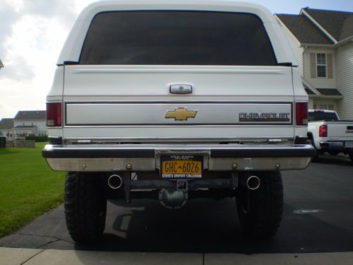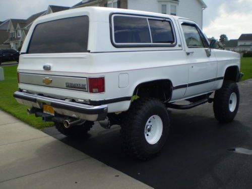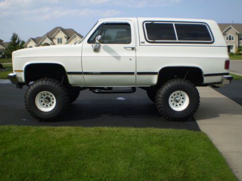 UP FOR BIDS IS MY PERSONALLY OWNED 1990 CHEVY K5 BLAZER. LOOKING FOR A NEW HOME, THIS TRUCK DOES NOT NEED ANY MAJOR CHANGES TO MAKE IT PERFECT. SINCE NEW IT HAS HAD ONE REPAINT. THERE WERE ONLY A FEW AREAS OF PIN HOLE ROT ON THE FRONT FENDERS, QUARTERS, AND ROCKER PANELS. I DESIDED RATHER THAN METAL PATCHING THESE AREAS, TO REPLACE THE ENTIRE PANELS BECAUSE THEY WERE NOT ASTRONOMICALLY EXPENSIVE FOR THIS ERA TRUCK. WITH THAT BEING SAID, NEW FULL QUARTER PANELS, FENDERS, AND ROCKER PANELS WERE REPLACED. THE DOORS AND TAILGATE ARE ROT FREE. THE SAME WENT FOR THE DRIVER AND PASSENGER FRONT FLOORS. WITH FEW AREAS HAVING PIN HOLES, I HAD NEW PANS WELDED IN. THE INTERIOR IS NICE. ALL ORIGINAL SEATS, SIDE PANELS, DOOR PANELS, CARPET AND DASH. THE DASH HAS TWO CRACKS IN THE NORMAL SPOTS WHERE THEY ALL CRACK. THE HEADLINER IS NEW. MECHANICALLY SOUND, THE (5.7) 350 EFI ENGINE HAS LESS THAN 8,000 MILES (CRATE ENGINE). THE TRANSMISSION WAS REBUILT AT THE SAME TIME OF ENGINE SWAP. THE AXLES HAVE THE FACTORY 3;73 GEARS. THE FRONT AXLE HAS ALL NEW BARRINGS AND UPPER AND LOWER BALL JOINTS. THE SUSPENSION IS BRAND NEW WITH A COMPLETE 6 INCH LIFT BY ROUGH COUNTRY SUSPENSION WHICH INCLUDES ALL FOUR ARCHED SPRINGS, NEW SHOCKS, U-BOLTS, HARDWARE, STREERING ARM, FRONT SWAY BAR DROP BRACKETS, BRAKE LINE RELOCATION KIT, A 2" TRANSFER CASE DROP KIT, AND NEW FRONT DRIVE SHAFT. WHEELS AND TIRES ARE NEW. EVERYONE HAS BLACK OR CHROME WHEELS, I DESIDED TO GO COLOR COAT TO THE TRUCK. NOT WAGON WHEELS BUT THEY ARE STEEL 15X10'S. THE TIRES ARE ALSO BRAND NEW WITH UNDER 400 MILES ON THEM. (THE KNOBS STILL HAVE THE NEW NUBS ON THEM). 36X12.5/15 SUPER SWAMPER TLS RADIALS THAT HUM NICE AND DRIVE SMOOTH EVEN AT SPEED OF 60MPH. (NOT CHEAP $$ TIRES). EVERYTHING ON THE TRUCK WORKS AS FAR AS POWER WINDOWS, POWER DOOR LOCKS, LIGHTS IN AND OUT, THE FACTORY GUAGES, WIPERS, HEAT, AND A/C. IT HAS TILT WHEEL, CRUISE, AND AFTER MARKET DETACHABLE FACE RADIO WITH CD PLAYER, AND NEW SPEAKERS. THE ORIGINAL SPARE IS MOUNTED INSIDE, WINDSHIELD IS NEW, CLASS 3 HITCH, NEW NERF STEP BARS, AND NEW HARDWARE IN THE TAILGATE AS WELL. THE CHROME ON THE TRUCK IS VERY RESPECTABLE, BUT NOT SHOW QUALITY. THE BUMPERS ARE THE ORIGINALS. THIS TRUCK IS A VERY FUN RIDE. I GET MANY COMPLIMENTS ON IT AT LOCAL CRUISE NIGHTS AS WELL AS ON THE ROAD. IT TURNS HEADS EVERY TIME. ITS NOT A SHOW PIECE, BUT AT THE SAME TIME NEVER BEEN MUDDED. I HAVE SET THE RESERVE AT A REASONABLE PRICE. YOU CANNOT BUILD THIS TRUCK FOR THE AMOUNT OF $$$CASH$$$ I HAVE INVESTED.MY LOSS WITH SOMEONES DEAL OF THE YEAR. SO, HOPING TO FIND A NEW HOME, HAPPY BIDDING!!! Before placing any bids, feel free to come and inspect the vehicle in person or have someone come to inspect it for you if you wish. This vehicle will be sold is as is , where is condition, because it is privately owned, and has no waranty. It is going on 25 years old. I require a Paypal deposit of $500.00 within 24 hours of the end of auction, with the balence due within 5 days from the end of the auction. The buyer will be 100% responsible for picking up the vehicle or making arrangements for the hire of a transporter. The vehicle will not be released unless paid in full. I except cash in person, or certified bank check that will have to clear before I release the vehicle. Paypal is golden, but please be respectful and add the percentage charge that goes with it as well. I reserve the right to end this auction early if the vehicle is sold locally.