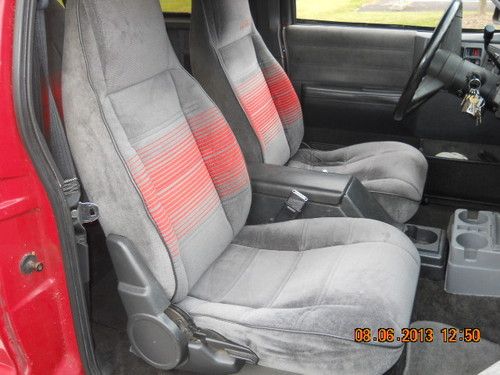 High and low 4 wheel drive. Super BEAR CATCHER mounted on the front. You can catch a bear or a deer without damaging your truck I guess? Tilt steering wheel. Cruise Control almost never used. This great little truck was originally purchased NEW by a man who was 65 years old at the time. He was 82 when I purchased it from him and I'm 65 now and I have owned it for about 5 years or so. TWO OLD GEEZER OWNED. It has always been cared for mechanically and it is a very reliable vehicle. It goes anywhere in deep snow too. We went out several times in winter trying to get stuck but you can't stick this thing. It goes through 2 feet of snow like it wasn't even there. The motor and trans are dry with no leaks and it doesn't use oil. Power windows - AM/FM stereo with some sort of a booster in the rear mounted to the side? I don't listen to the radio often but it sure is unbelievable when I do. I don't think the CD player part works? AC unit is not hooked up and never has been since I owned it. I do not know if it works or not. Rear window defroster not hooked up but easy to do. Rear window windshield wiper. Superb designer seats - the interior is excellent. Fold down rear seat provides lots of room for stuff. It has rust in fender wells and bottom side panels as shown but it hasn't gotten any worse since I purchased it because I always treat that with rust inhibitor. 2000 RPM equals 75 miles an hour using the cruise control and it gets 20mpg consistently. This little truck is unbelievable on the highway as well as in town. It has a very, very tight turning and parking radius. The first owner never used the cruise control and I have only used it a few times. 4.3litre strong V6 motor is actually 3/4 of a Chevy 350 block and it is a strong running motor. PA inspected to 10/13 but it has never needed anything. I'm really easy on a vehicle and take care of it. Needs front tires soon - rear are about 60%. Recently aligned it runs straight down the road. New fuel pump in the tank cost me $500. New alternator.