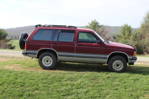 Up for sale is a 1993 Chevrolet S10 Tahoe Blazer. It has the famous 4.3 liter Vortex engine. I bought this vechile off my neighbor because he needed some cash. It runs and drives great. There is only normal scrathes on the body with no major dents. The paint has faded some on the hood and front fenders. there is a little rust along the driver and passenger doors.(See Pictures) it will make someone a nice vechicle. The tires are about 50% tread and will last for several more miles. It has a spare tire rack on the back of vechicle. Motor runs great and has no knocking. Bid with confidence as this vechile has a low reserve and will sell.
