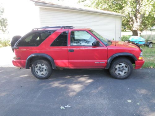 Hello. I am selling my 2002 Chevy Blazer that is a 2 door, 4 wheel drive and I am the 2nd owner of this vehicle. The vehicle runs and drives good. In the past 6 months I have had a new radiator and alternator installed along with new brakes and rotors. The interior is in very nice condition and is not all ripped up at all. The KBB pricing on this vehicle ranges from the low price of $4388 to the high price of $5300. However I am selling mine for a lot lower. I always keep my vehicles maintained and if my mechanic tells me something should be fixed then I get it fixed. I would not hesitate to drive this vehicle across country at anytime. I am only selling this truck because I don't need it any longer. Please ask all questions that you may have and this truck is sold as is with no warranty expressed or implied. This will make someone a great little truck and would even be great to put a plow on and plow with it. Thank you for looking.