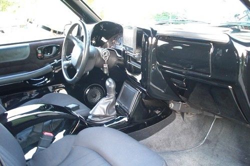 2003 Blazer Xtreme, It does lay on frame. Interior: Black custom fiberglass interior which has shaved air vents, black suede on the door panels, 2 screens, one in the center counsel and the other in the dash. Has custom center counsel with 7" screen all fiberglass. Has a custom fiberglass subwoofer box right behind the front seats, which holds 3 - 1200 watt Directed sx subs, and also mounted in the box is the capacitor. There are 3 - 1200 watt Directed amps as well which are held in the back of the truck, which are mounted on an amp rack. Has Kinetik battery as well for the system. Exterior: 20" KMC Stealth Rims (needs new tires soon), tinted windows, billet grill, street scene mirrors, python alarm system. This truck definitely turns heads on the street. Has been a summer vehicle since I got it in 2006, has been kept in a heated garage every winter. This truck only has 35,500 miles on it! Serious offers only! Would Consider Trade