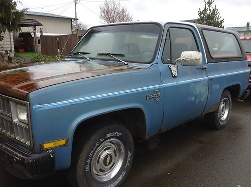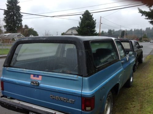 32 year old truck that shows it age...has rust in rockers and kick panels & probably in front floors, runs and drives..front right brake caliper sticks sometimes. I only drove it on county roads a couple times, never took it on the freeway. Was going to put a stroker motor and 4- speed(rat rod)...plans have changed(decided on El Camino) ..last of the Fullsize 2wd k-5's just sitting now with no future plans. Truck sold as is where is, buyer responsible for all shipping and handling costs. Truck is also for sale locally so if it sells this auction will be void