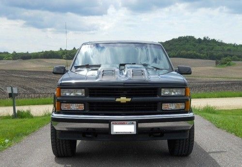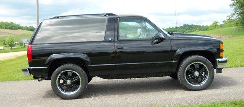 1994 Chevy K5 Blazer, last year for the full size Blazer. This Blazer is 100% Rust free brought to Wisconsin from down South. It has a custom steel cowl hood, custom Harley Davidson interior, Billet steering wheel, and 20” American Racing Fuel Alloy wheels. It has 87,000 original miles (will go up some as I still drive it) stock 350 TBI, 4 speed auto, and is 4WD. I have recently gone over it, and replaced everything that needed attention. Has towing package, Z71 off-road package, and has power everything. It has a nice aftermarket AM/FM/CD player, and front and rear speakers have been upgraded. There is a full size spare tire as well. The Power Steering Pump, Alternator, Serpentine Belt, Steering Dampner have been replaced in the past 2 years. The Intake manifold gaskets, Valve cover gaskets, TBI gaskets, TBI rebuild, MSD Coil, and a new Computer Chip were installed at 43,000 miles. The Chip was installed to correct the Odometer due to the taller tires, Remove the EGR, Run at lower temp (180), and the timing and fuel was adjusted. The Blazer will hit collector car status this September, so plates and insurance should be reasonable. I'm not giving it away, not really concerned with what a book says its worth, It is a nice Blazer with low miles, with custom touches. It has a ton of life left with no rust, and low miles. Dealers around my area are getting $8000 + out of these, and they have rust and high mileage... The Cons - Carpet needs cleaned. Interior is in good condition, not torn up, but could use a good cleaning. The exterior is in very good condition, but could use a good waxing. The NEW in past month: New Firestone Destination AT tires. $1200 New Shocks front and rear $180 New Brakes front and rear including: rotors, drums, shoes, pads, calipers, wheel cylinders, brake hoses $550 New front wheel hubs $ 265 New sway bar links $ 65 New Dual exhaust from manifolds back, Magnaflow mufflers $500 New 4x4 Actuator $ 80 New headlights, running lights, taillights, all new bulbs $170 New Grill $ 170 New remanufactured steering column $225 New plugs, wires, cap, rotor $ 80 New Battery $ 125 New thermostat, radiator flushed and filled. $25 Fluids and filters changed $ 60 AC recharged and blows Ice cold $45 New wiper blades and arms, front and rear $60 Front end alignment done by Firestone. $60 Keywords: Tahoe, Yukon, Silverado, Sierra, CK 1500, 4x4, TBI, SBC I have this Blazer for sale local, and other websites, so I de reserve the right to end at any time.