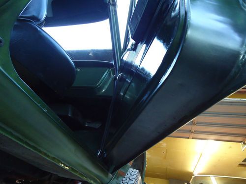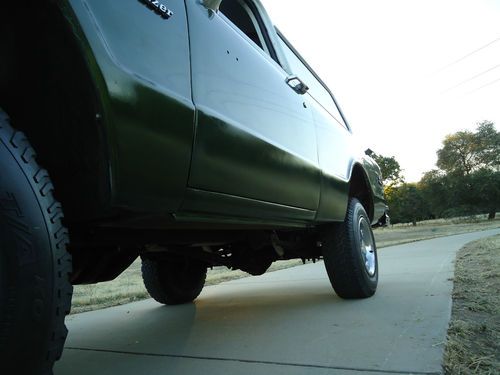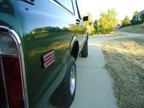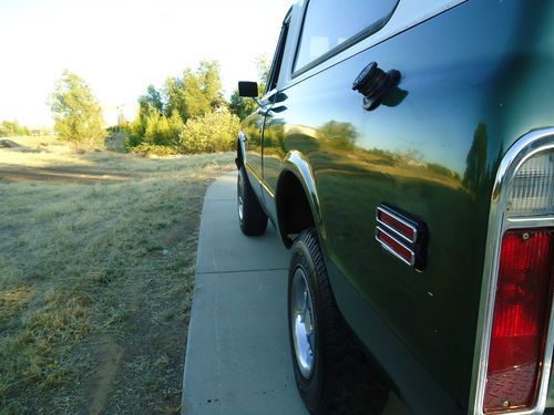 THE BODY AND PAINT- The body on this Blazer is in over all good condition with factory floor pan that are solid along with the kick panels they are also solid and are not showing any signs of rust or surface rust through the paint. The quarter panels are original to the Blazer and are in good condition with only a small ding in the drivers side rear, they are not full of bondo and they have not been crashed in to they look straight when looking down the sides they are not wavy or beat up. Both the doors are clean and solid. The drivers door had a trailer mirror mounted on it and has a few extra smaller holes. Both the front fenders are in good condition and I have checked the passenger side fender down low inline with the battery and it shows no signs of rust same with the drivers side. The passenger side inner fender wells also shows no signs of rust same with the drivers side. The radiator support is also original and shows no sings of rust and will not need to be replaced. The outer rocker panels look good and they are not full of body filler and will not need to be cut off or replaced. The windshield pillars and upper windshield area both out side and inside are rust free and are in super condition. Behind the inner windshield rubber across the top is also dry and still shows its original paint at the pinch weld this area is not rusted out. The top of the metal dash down by the windshields rubber is in super condition and still has the original paint and is not rusty or water stained. The removal hard top is in good condition and is not split or chipped. Over all the body on this blazer is not beat up and this is a straight Blazer with good body gaps throughout. The bottom side of this truck is not rusty or full of under coating it is apparent underneath this truck that it was not used for off roading. The paint on the blazer is a repaint of the original factory color and the repaint is older and is showing its age with nicks and chips through out. The paint is good enough to drive around