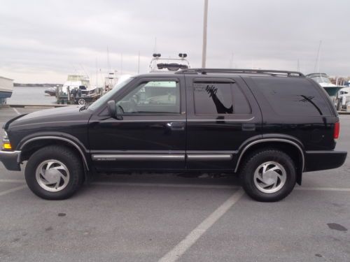 This Blazer runs and drives smoothly , I have driven it around 100 miles and it appears to run as it should , shifting smoothly through all gears , stopping as it is supposed to , the engine is quiet with no strange noises . Overall I think we have an affordable 4x4 for the upcoming winter , we have checked the carfax history and it has a clear title with no accident damage reported . We have not owned the car long and it was purchased in a "lot" of vehicles recently , I have driven it through the car wash prior to taking the pictures this morning , the exterior looks in great shape and the interior could use a detail in my opinion but in order to keep the price down we just ran it through a regular carwash . I will do my best to describe its overall condition , as I said prior she runs and drives great , there are 1 or 2 small quirky things I have noticed , Firstly the fuel gauge normally reads full when you turn on the ignition and then after around 30 seconds the gauge appears to go to where the actually fuel level is , I am not sure if it is a loose wire or what but as I said once you start driving it appears to rectify itself , secondly the ABS light comes and goes stays on for a while then switches off , I have not even attempted to look at why , as you can see from the picture when I took a picture of the instrument cluster and the car was running the gauge was off , in fact there are no other warning lights which appear on the dash once the car is running which is good news . There are 2 small spots of rust , one on the back bumper and one on the passenger side rear wheel arch , it is starting to bubble in an area round an inch or just over but no holes and I think this could be quickly addressed . We have priced the car to sell at what we feel is a very reasonable price considering age and condition , we are not able to sell this vehicle to a MD resident as it is has not been MD inspected . We do charge a $150 document fee which includes us handling all the titlework so it is ready to transfer to your home state and most importantly it includes a 60day temp tag so you can drive your new Blazer home . Please feel free to e-mail with any questions , |