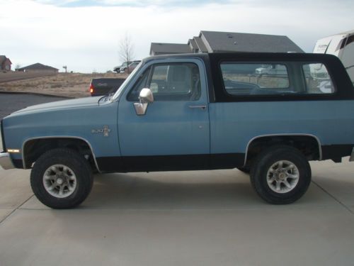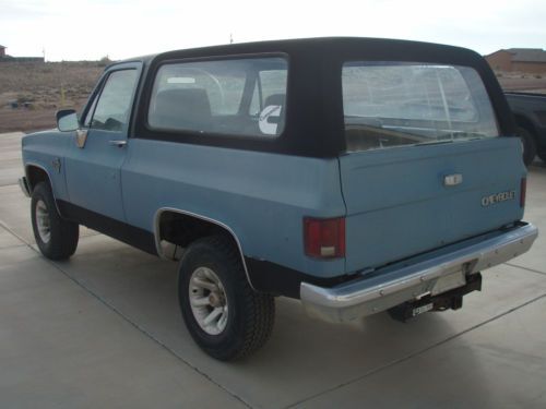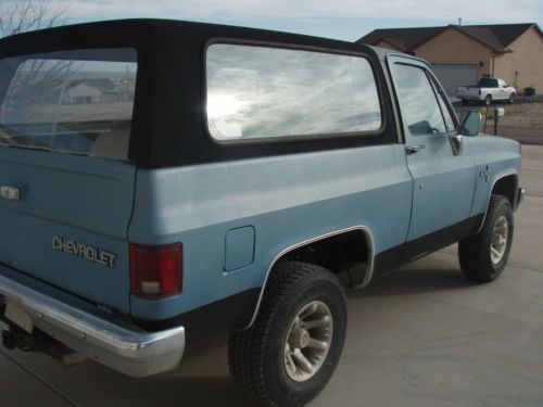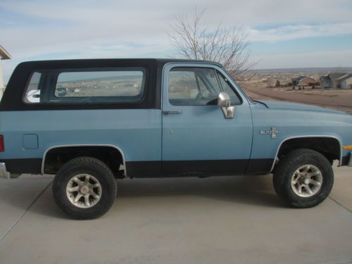 This is a 1983 Chevy Blazer with a 4 cylinder Cummins 4bt Turbo Diesel Conversion with a 5 speed transmission. Daily driver, reliable, runs and drives good and makes good power. Has not been turned up. Gets good MPG. Has good tires, New shocks, steering damper and carpet. EGT and Boost gauges, P/S, P/B, Tilt wheel, power rear window. A/C needs compressor with brackets. The black on the body and top is Rhino lining and is trying to peel in a few places. Body is very straight but paint is faded. Small spot of rust on drivers door sill. Floors are solid. Windshield has crack on lower passengers side. Would make a good wheeler, expedition vehicle or daily commuter. Please see payment instructions before bidding Call 719-557-1755 with questions