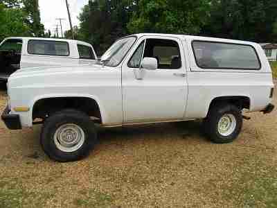 ex-military blazer frame and body solid only minimal surface rust has some dents on doors and around vehicle runs and drives good drove to lower missouri last fall about 300 miles nonstop with no problems i believe mileage is correct by condition of vehicle these blazers usually get around 20mpg 6.2 diesel 400 turbo auto govloc rear 3.08 gear ratio it is still 24 volt with dual alternators all lights including dash work except military blackout there are three holes in roof made by fire department that previously used it they are about 1 inch on outside and 2 inch on inside tires are not much but dont go flat has civilian gmc grill selling as-is pick-up only or buyer makes all shipping arangments $500 non-refundable deposit within 24 hours by paypal balance within 2 weeks no reserve auction