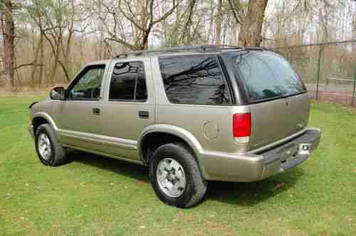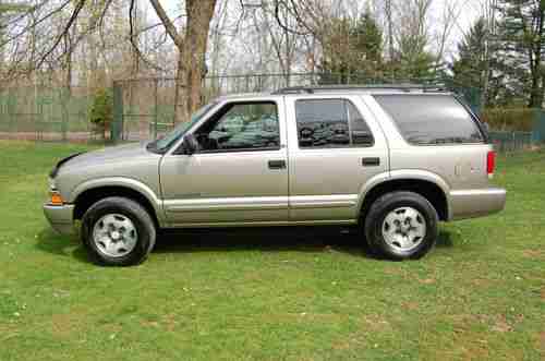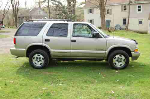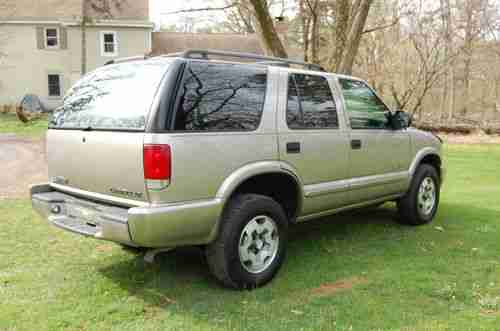 Here for sale is a really nice looking, running 4 wheel drive 2002 Chevrolet Blazer LS. One owner, clean car fax..no accidents and runs very well. This Blazer has a tilt wheel, cloth interior, 4.3 V6 engine, auto trans, power steering and brakes, tinted glass, air conditioning/heat, roof rack, dual air bags, factory alloy wheels and good tires, AM/FM stereo with cassette. Currently Pa Inspected, good until 9/13 Once again, this vehicle runs out very well and is in good, clean original condition. Selling at NO RESERVE call with any questions at 215-862-9555 price excludes tax, tags and doc fee of $149.50 We are located in New Hope, Pa 18938 since 1985.