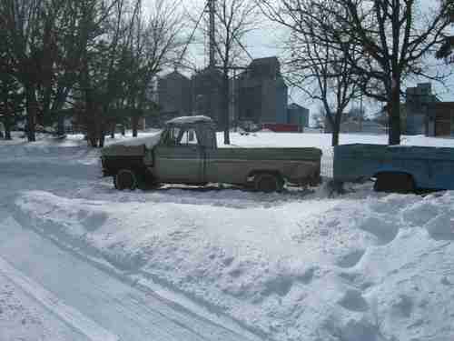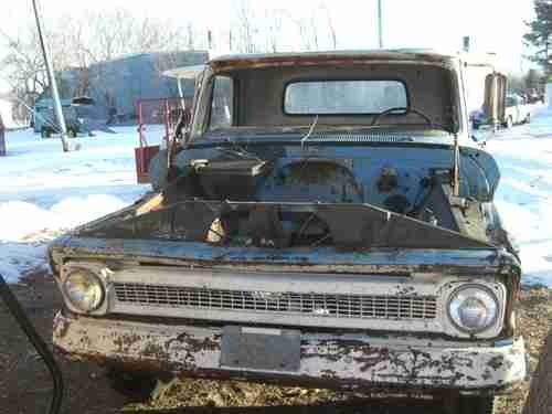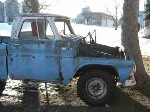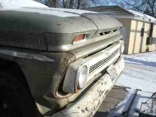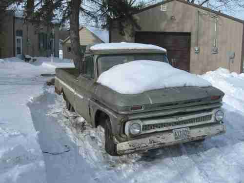 The first one is a C-10 long box with a six cylinder manual shift. Motor is stuck, has numerous dings and scratches, missing front fender and wood box floor. The rest of the body is pretty rust free especially the cab. Has all the windows and the original radio. This truck does NOT have a title.
