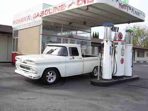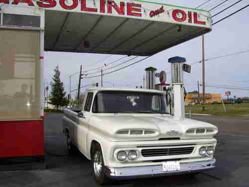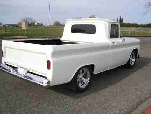 1960 C10 Shortbed Fleetside . This truck was built with a complete frame off .The frame has been painted with por15 black and the body was painted with Imron White. It has a small block 350 motor and a turbo400 transmission, Boyed Cottington custom wheels .All the hindges were chrome plated as was some of the trim pieces on the inside ,Also it has a Nolimit dash with autometer gagues The bed was done with formica covered plywood with stainless steel runners. Most all of the bolts that were used to assemble this truck are stainless steel. It has 91 GMC half ton heavy duty 11in front disc brakes with drum brakes in the back. Custom leather seats made by luxliner. I spent 4yrs building this truck and it is very dependable would not be afraid to drive it anywhere.Also has three in. flow master exhaust sounds great runs great is also for sale locally . Any questions just ask.