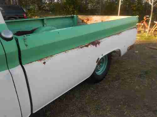 You are bidding on a 1960 chevy apache c10. long bed, small back glass.