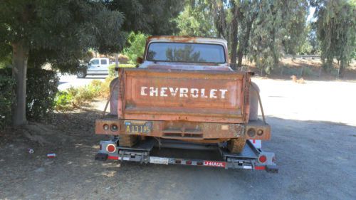 1961 CHEVY TRUCK!!!! LONG BED STEP SIDE!!!! LOOK AT PICS THE ONLY ROT I CAN FIND IS IN HOOD!!!!! IT DOSE HAVE RUST!! DOSE NOT RUN AND BRAKES NEED WORK !!!! HAVE NOT TRIDE GET IT STARTED. MOTOR TRUNS BY HAND!!!! IT DOES HAVE DENTS IN THE BED AND CAB!!! LOOK AT PICS THE CAB IS NICE SHAPE FOR HOW OLD THIS TRUCK IS!!!!!! TRUCK IS IN CONCORD CA. SOLD AS IS........ JUST NEEDS A NEW HOME AND SOME ONE TO FIX HER UP!!!! LOOK AT PICS!!!! YES I WILL SHIP BUT YOU WILL HAVE TO PAY FOR SHIPPING AND HANDLING!!!!! THANKS FOR LOOKING!!!! OLDDIRTYDANS! 714 743 5216 DAN