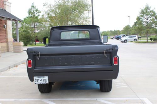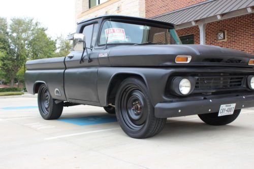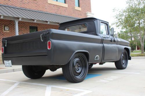 Up for sale is my 1962 Chevrolet C10 truck. Over all the truck is in great shape for its age. It is by no means perfect, but it certainly a one of a kind truck with that old school look! It has been painted flat black and sits on 22x9 old style steel/steelie wheels with 285 45 22 Bridgestone tires that are in really good shape. Most of the interior is brand new. It has a brand new original "old" steering wheel, brand new carpet, and a brand new seat cover. It comes with the original radio (see pics), but currently has a CD player installed with an MP3 jack and 6.25 inch kicker speakers in some tasteful plastic enclosures. It has a manual 4 speed transmission (not a muncie) and a fresh 350 (less than 3,000 miles since the rebuild) with an aluminum intake and Edelbrock 600 carb, full length headers, and a huge aluminum radiator. It also has a brand new wiring kit from front to back with a new style fuse box. It has a touch of modern gauges with an original speedometer (see pics). Truck sits low, but not so low that it cant be taken just about anywhere. This was a daily driver for the last couple of years! It has current tags and inspection for the next year or so here in Texas and a clear Texas title. There is no warranty written or otherwise implied and is being sold as is. Feel free to ask any questions. I reserve the right to end the auction at any time as the truck is for sale here locally. I can assist with shipping, but there is no shipping with the truck as it is up to the buyer to arrange shipping. I can deliver the truck with in a 300 mile radius from 77407 for an extra fee. A non-refundable $500 deposit is required within 48 hours of the end of the auction. Cash or a cashiers check from a major US back for the remaining balance. Funds must clear prior to arranging delivery. If you have any other questions feel free to contact me at 281-782-3505. Thanks for looking!!!