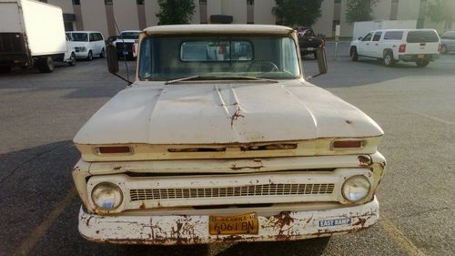 I am selling my 1964 Chevy C10 lwb pickup. It has a 230 I6 engine with a 3 speed on the column, the body is a little rough, but the engine and trans work great. just had new battery, alternator, plugs and wire, contact points, distributor cap and rotor, ignition coil, ignition condenser battery cables, horn relay, . My wife is tired of it sitting in the garage. Runs and drives. The carb is currently off the truck being rebuilt. I also have an almost complete 350 engine I will let go with the truck.( if not sold before the truck) I have about $2000.00 worth of parts and work into truck. This truck is for sale localy and I reserve the right to end the auction early. Paypal or cash in person is required. Buyer is responsible for pick up/transportation and all fees associated with transportation.