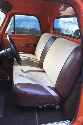 Make: Chevrolet Stepside Pickup Engine: 8 Cylinder, 283 V8 L Model: C-10 Exterior Color: Orange & Cream VIN: 4C254H133181 Interior Color: Brown & Tan Title: Clear Mileage: 61,399 Price: $5850. 8' Long Bed Power Steering Power Brakes Dual Exhaust New Carpeting New Upholstered Seat Automatic Stick on Floor New Sony Detachable Stereo Great truck.....Starts every time and runs great. Daughters truck driven daily. New exhaust give a real hot-rod sound. Not enough time to finish project. Needs either hood or body work. Had two separate estimates on total for body work and new paint of $3400. That's all this needs to be a $15,000. or more, collectors item. |