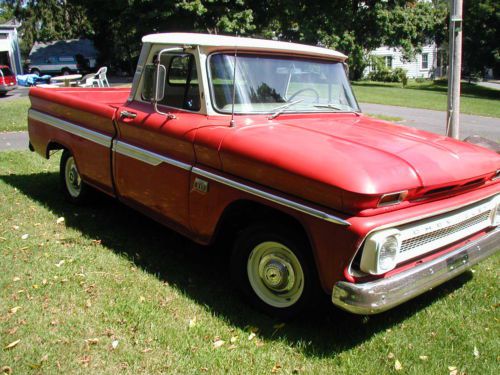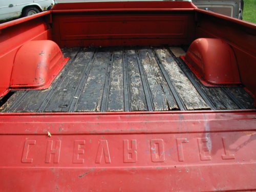 Here is a old truck that my friend bought in Va. to restore with his son. He replaced all brakes and cylinders,hoses,battery,gas tank,sender,lof,carb,clutch,throw out bearing and pressure plate. Runs like a 283 should. dated 1965. Has some rust in the ussual areas,but not alot. Great truck to drive as is or paint it. TMU, shows 72K. Wood shows some rot. Check her out. Thanks for looking.