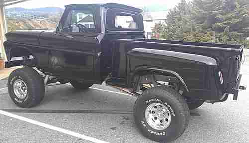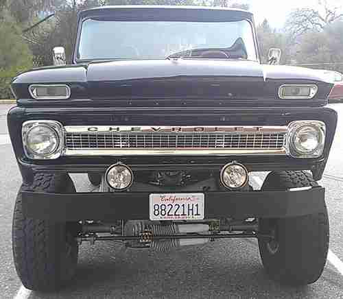 All new, 4 bolt 383 aluminum heads 202 valves big cam strocker 425hp, with ceramic headers, new 205 transfer, drive lines, dana 44 front with warn hubs lockers, 12 bolt eaten possi rear, traction bars, 8 shocks set up, new black 2 stage paint, like new electric captain seats from chevy and console grey, new grey carpet, painless wiring, door poppers, tinted windows, gauges, new 700r4 trans 3500 stall. Oak bed with custom fuel cell, disc brakes all around, SS brake lines, frame off restoration complete. New custom front back 6'' bumpers with receiver, new borg warner steering, tilt wheel, B&M ratchet shifter, all new weather stripping, smoked glass, stereo speakers, 6'' body lift. Truck was assembled with grade 8 and SS bolts complete. Tight truck Custom air brush sculls on hood and doors. Truck is set up for Vintage Air!! Have new mag wheels and 35'' tires, just won't fit in garage. Truck looks and drives bad to the bone.......Asking $24,500 obo 559-999-3177 way to much to list over $40,000 invested. My loss UR gain. Just completed resoration, this thing is FULL-ON TIT'S UP