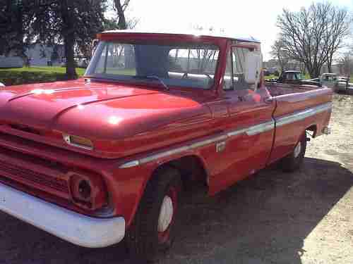 1966 chevy truck project driver ,the pics in this add are a couple weeks old I will be adding more, truck is running and is driveable , but is still a project the dash is apart ,the glass is all good but not installed, i have new seals for windshield and back glass ,tires are new, bench seat (black) plain but no tears, small six with 3 speed on floor, interior needs work a, its all apart, truck is complete everything to complete, a good driveable project , bed has a nicely welded in steel floor. I bought it for 2500.00 as a project 3 months ago and have had no time to get to it, to many other projects . could be a fun truck real easy trades possible for ironhead or shovelhead project for sale locally reserve the right to end this add at any time.so if you are interested call 563-505-6699