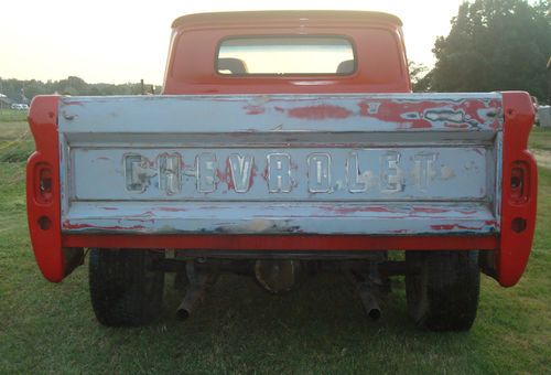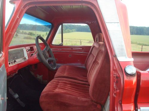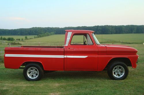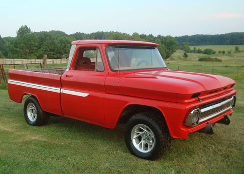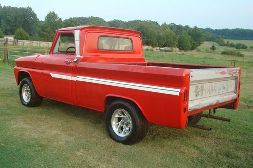 1966 CHEVROLET C-10 SWB FLEETSIDE PICKUP TRUCK PROJECT, 350CI ENGINE RUNS/SOUNDS GOOD, TURBO-HYDROMATIC 350 AUTOMATIC TRANSMISSION, POWERSTEERING, POWERDISC BRAKES, CONVERTED TO 5 LUG, LOCAL MISSISSIPPI TRUCK THAT HAS BEEN AROUND THIS AREA IT'S ENTIRE LIFE, AMATEUR RED/WHITE PAINT DRIVER QUALITY, RED INTERIOR, SOLID SOUTHERN TRUCK NEVER SUBJECTED TO SALTY ROADS OR CLIMATES, 98% RUSTFREE, ALL OF THE CRITICAL AREAS SUCH AS THE FRAME, FLOORPANS, ROCKERPANELS, CAB-CORNERS, BOTTOMS OF THE DOORS, WHERE THE WINDSHIELD MEETS THE DASH, AND THE AREA/VISOR ABOVE THE WINDSHIELD IS IN VERY GOOD/SOLID CONDITION FOR A TRUCK THIS AGE, ALL GLASS IS GOOD, DOOR GLASS ROLLS UP AND DOWN FINE, NICE BODYLINES, AS YOU CAN SEE IN THE PICTURES SOME ASSEMBLY IS REQUIRED IE..HEADLIGHTS, TRIM, FRONT/REAR BUMPERS, TAILGATE, AND A FEW THINGS INSIDE THE CAB, SEAT, DOORHANDLES, WINDOW CRANKS, ETC.. MOSTLY THINGS THAT CAN BE DONE AT HOME IN THE COMFORT OF YOUR OWN SHOP/GARAGE, OVERALL A GREAT FATHER/SON/DAUGHTER PROJECT TO FINISH TO YOUR LIKING, PROTOURING CRUISER? LOWRIDER? MANY POSSIBILITIES WITH THIS ONE, SOMEONE IS GOING TO GET A NICE SOLID TRUCK TO PLAY WITH, AS STATED ABOVE SOME MINOR ASSEMBLY REQUIRED WHICH IS MUCH MUCH BETTER THAN REPAIRING OR REPLACING A BUNCH OF RUST, BIDDERS WITH ZERO/NEGATIVE FEEDBACK MUST CONTACT ME BEFORE BIDDING OR I WILL CANCEL YOUR BID/BIDS, SOLD IN AS-IS CONDITION WITH A CLEAN CLEAR TITLE, THANKS FOR LOOKING AND GOODLUCK, POSSIBLE DELIVERY WITHIN A CERTAIN DISTANCE FOR $$. FEEL FREE TO CONTACT PAUL AT 901-219-9569 WITH ANY QUESTIONS, MY AUCTIONS OFTEN END WITH A SIMPLE PHONE-CALL, IF NO ANSWER PLEASE LEAVE MESSAGE AND I WILL RETURN YOUR CALL.