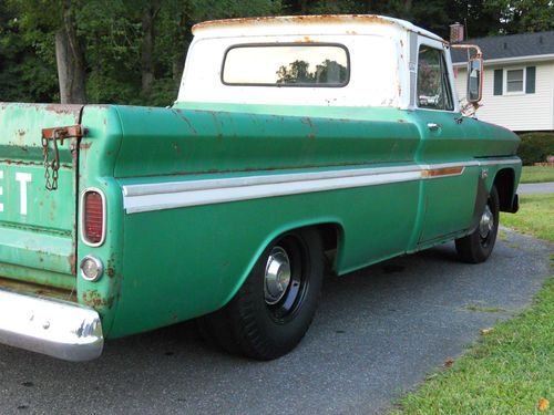 1966 C10 This is a fun solid great running truck. Body has some rust in outer rocker panels but none of it is structural. Body and cab mounts are all solid as well as the floors. Doors open and close perfect. Body has all original panels and bumpers. Rear wheel wells were split and widened for the 10" rear wheels. Frame is in great shape . All gauges work. All fluids were changed, engine, trans, differential. Wipers and heat work.