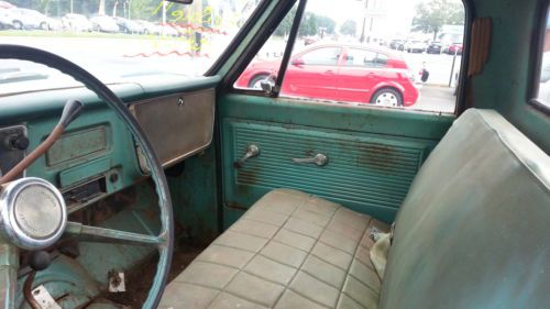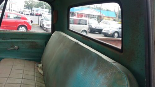 This vehicle was recently discovered in a barn that was to be demolished for new construction. It was last registered in North Carolina in 2002. It is a one family owned truck that has always been in North Carolina. I have gone as far as getting it to start and run. It will need to have gas tank cleaned and fuel lines replaced. All four wheels are free wheeling and the truck does roll. I have not done anything with the brakes. There is surface rust on the frame, but no holes thru it. Very solid. The rocker panels have some rust thru but not bad. I did not go too far with this truck because there are too many possibilities as to what the next person would want to do with it. It has great overall patina that could not be duplicated. It has a straight inline 250cc 6 cyl. engine. It has a manual transmission. The shifter was moved to the floor at one point, but the column shifter is still in place and could be re-attached if prefered. It comes with a clear North Carolina title.