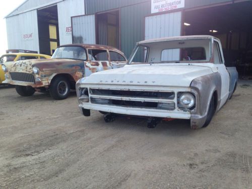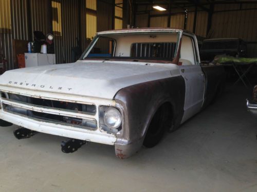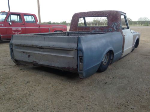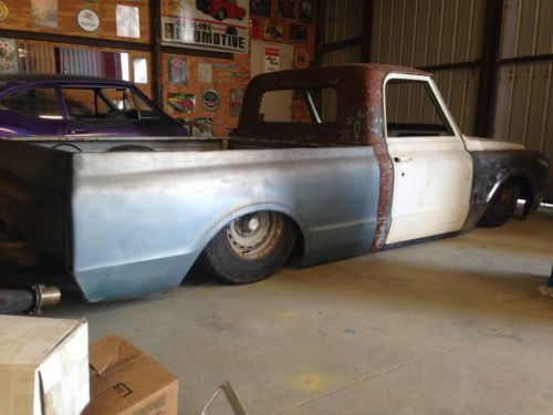 For Sale: 1967 Chevy Short Bed. This truck has had a frame off restoration started with a very high dollar air ride suspension upgrade. It has a Porterbuilt tubular Dropmember along with Porterbuilt body drop cab and bed mounts and tubular transmission mount and carrier bearing mount; all Porterbuilt. The rear suspension is KP Components from Chris Alston's Chassisworks. It has a Bolt-On Watts Link System. Has a complete stainless fastener set, bolts, nuts, and screws from cab forward including all inside of cab hardware. Also have new 82 piece LMC body to frame mounting kit; which is all bushing and bolts, nuts, and flat plates. Have new in the box Wilwood master cylinder for disc brakes; does not use a booster. Truck has 13 inch disc brakes on all four corners. Rotors and axles are drilled for car and pickup bolt pattern. Has re-upholstered seat, new dash pad, and new stainless brake lines and black rubber brake lines. Has brand new chrome tilt steering column; has a lot of parts that are already sand blasted ready for paint. Truck has a low mileage throttle body 350 that has been converted to a carbureted intake with a 700 R4 tranny. I have extra set of doors with windows in them; I have brand new wiring harness which is not pictured. This truck is a project and if you do your homework on the front suspension, rear suspension, and body drop mounts including the list of new parts that are not on truck yet, you will see there is a lot of money just in parts not including the truck itself. I am sure there is something I have left out. I reserve the right to end auction early because it is for sale or trade locally. For more information call Billy (325) 513-0492.