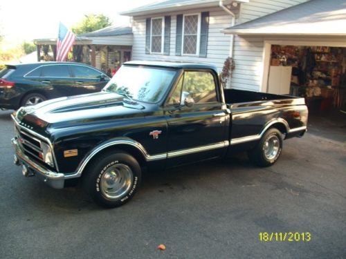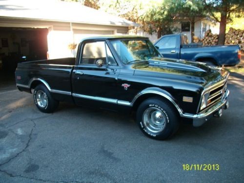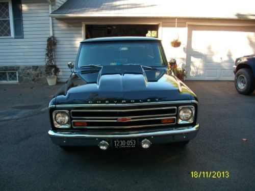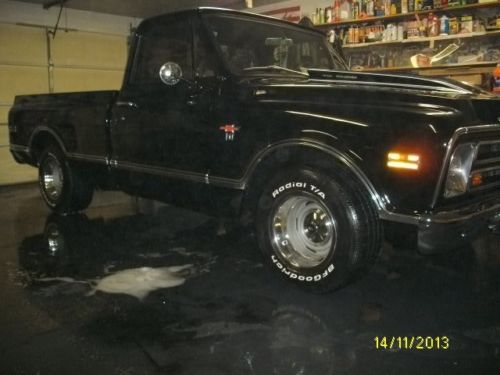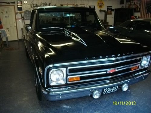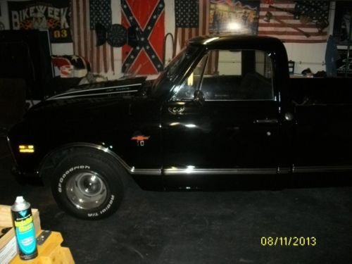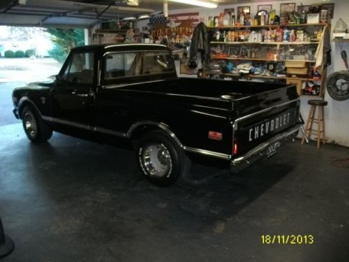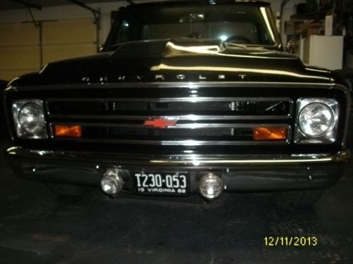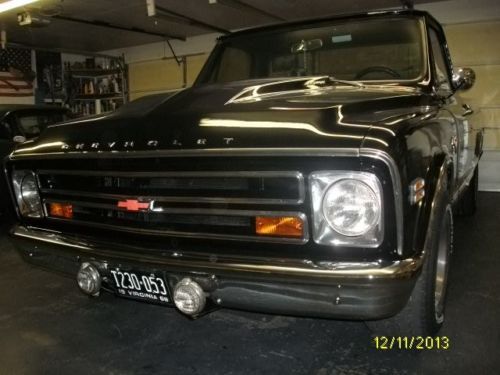 I have a very nice, above average 1968 Chevy pick-up listed for auction. This truck has had literally thousands of dollars and countless man hours spent on the resto-mod restoration of this truck. I call it restomod, because it is not 100% original. It has new black paint with every piece of new chrome on it, new emblems, wipers, new bed floor, wheel tubs, cowl induction hood, custom seat cover, door panels, visors, glovebox, gauges, carpet, window cranks, door handles, dash pad, lighter, alternator, brake lines, wheel cylinders, shoes, window felts, both inner and outer, glass run, weatherstrip, windshield, inspection.......the list goes on and on.... All the lights work, heat and defrost work also. The truck has a .030 over 350, flat top pistons, "double hump" 300 h.p. heads, aluminum intake, holley carb, hei distributor, headers, flowmasters that have about 12,000 miles on them. It does not smoke or rattle at all and runs great with no problems. I drive the truck regularly, so the mileage will change. It has an aluminum case, 3-speed manual floor shift transmission that shifts smooth and quiet with no problems. The truck is geared low, I would guess at least 3:73 or maybe lower. It does not have a positive traction rear end, if you gas it hard it will break loose spinning with 1 tire only. The truck is smooth on the road, drives good, runs good and looks good. I would not be afraid to start anywhere on this truck. I have a set of old school round bed rails, vent visors, tail-gate guard, unity spot light and cowl vent that is already cut and painted that will go with the truck also. I don't think you can find a nicer, more dependable truck for the reserve that is on this one. I will be glad to answer any questions that you may have. My feedback score reflects that I operate with honesty and integrity and I want to keep it that way. I have owned this truck for awhile and driven it regularly. I know it is in good condition and ready to go with no known problems at all. I reserve the right to end the auction early. The truck is for sale locally. Thanks for looking and good luck bidding.