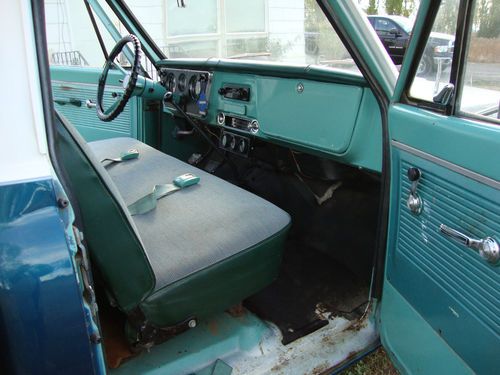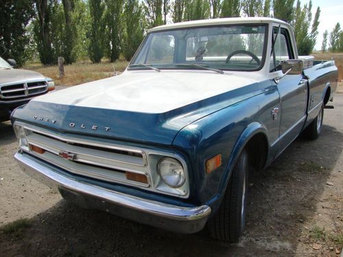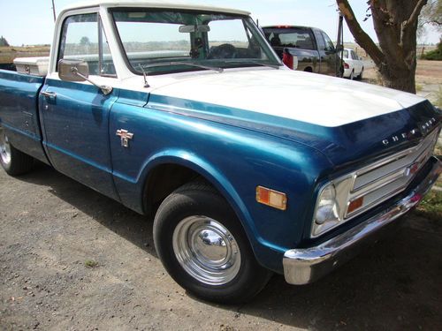 Up for bid is real nice Chevy C-10 Long bed .. This truck has only had 2 other owners and last owner swears to miles being 61,232 Miles to be true and org .Also cigerette lighter has never bin used.. This truck runs and drives so perfect that i do believe miles to be true and correct .. This truck has Factory 292 6 - Cylinder Factory 4 - Speed Factory 12 Bolt posi rear end with Factory heavy duty springs.. Also this truck has Factory saddles tanks.. As mater of fact Factory build sheet still remains in back of seat ... and card board cover still over Gas tank as shown in Photos .. This 1968 Chevy has only bin driven and owned by older adults .. All glass is good no chips or cracks ..Windows roll up and down with ease .. Heater works well and truck hold over 40 psi of oil pressure fully warmed up ....... This truck has bin in very dry desert climate its entire life .. You will find some rust down by lower rocker panel on drivers side and also some one in past has done some patch work down by lower inside kick panels.. Truck has had paint job years ago and its has chipped paint and some body work in some spots ?? .. Truck has never bin any wrecks and over all is pretty straight and looks really good 10 feet away .. Bottom line is this is real nice runner and looks good for age with many trouble free miles to go .. Truck does have low gears ratio. Please look at photos before bidding .. There are some things that i feel are must know for bidders .. They are as follows .Dash pad has cracks ..Body has some rust in few places ...tires have little bit of checking do to age ..i have never had keys for saddle tanks or tool box..I just have always used main tank behind seat.. i do have set brand new door seals for both doors winner will get them with truck.. Spare tire ... Keys and clear title ..Please look at photos i have pictures of worst damage i could find .. as fare as rust issues..High bidder can drive truck home no reserve auction .. Why am i selling truck ?? I need money to do 1965 Chevy c-10 4x4 ..short wide box .. Please feel free to ask any questions you would like and thanks to all bidders .....