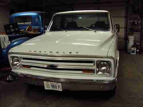 1968 chevy short box . Small amount of rust lower rockers. Truck has a Saginaw 4-speed. rear end out of a 72 5 lug, 3.07 gear. front is 6 lug drum. I am including frontend out of a 84 to convert to disk and 5lug. also a fresh 283 with edelbrock intake and carb. Truck has a tired 350 in it. It is licensed and insured, I us it weekly.