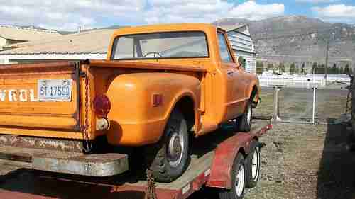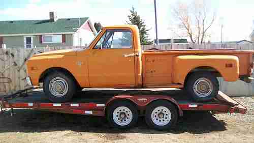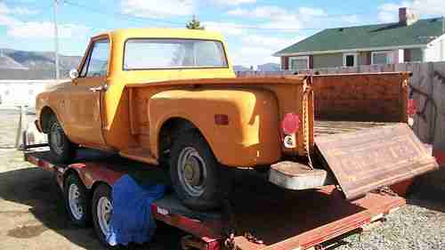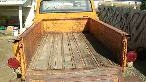 1968 CHEVY LONG BED FRESH FROM THE FARM AFTER 32 YEARS, THIS IS A REAL MONTANA FIND, OWNER WAS KILLED IN CAR WRECK, AND THE TRUCK WAS PARKED, IT HAS A 292 MOTOR 4 SP TRANS AND A POSI REAR END.VERY GOOD TO RESTORE, HOT ROD, RAT ROD OR DRIVE IT THE WAY IT IS,I WILL TRY AND START IT THIS WEEK, IT HAS DENTS AND DINGS, NEVER BEEN PAINTED,HAS NEW SEAT VERY GOOD AFTER 32 YEARS. WHAT YOU SEE IS WHAT YOU GET, HAS EXTRA HOOD, AND FENDER,I TOOK THE MAT OUT SO YOU CAN SEE THE FLOORS. NOW!! CHECK ON SHIPPING IT VERYS A LOT!!!,SOLD AS IS DO TO AGE! BUYER MUST GET SHIPPING, OR PICK UP, MAY BE STORED FREE UNTIL PICK UP..THIS HAS A VERY LOW PRICE FOR WHAT IT IS..MY RESERVE IS OVER 500.00 AND UNDER 1500.00 BUYER TO SEND 500.00 DEP. 24 HR. AFTER SALE,BALANCE IN 7 DAYS, YOU MY PAY IN CHECK,IT JUST HAS CLEAR THE BANK, BUT NO PAY PAL ON BALANCE UNLESS YOU PAY THE FEES, JUST COST TO MUCH!!!! ANY INFO. GARY JOHNSON BUTTE MT. 406-498-8937....