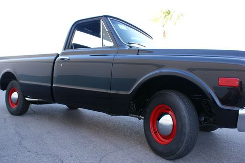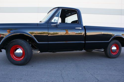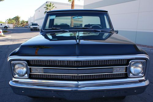 1969 Chevrolet C-10; new goodwrench 300 HP 4-bolt 350 400miles Edelbrock intake and 1406 Carb; New high energy ignition; ceramic coated headers; new Flowmaster exhaust; new 4row radiator with electric fans (added 20HP); AAMCO 700R4 overdrive transmission 400 miles; everything down to the frames has been sandblasted and painted with 2stage PPG paint. Black; silver; gunmetal. Laser straight body with DCC base with clear then cut and re-cleared again. New bumpers; new grill; New 20 gal fuel cell. Restored down to the core/ firewall- both directions. All wires re-loomed. All new rubber everywhere; New weather-strip; New upholstery; new instrument cluster; CNC Billet steering wheel; Tail gate is almost done in/ still in paint. C-10 and Bow-tie emblems included (I like the clean look) stock rims; ROCK solid. Very close attention detail.